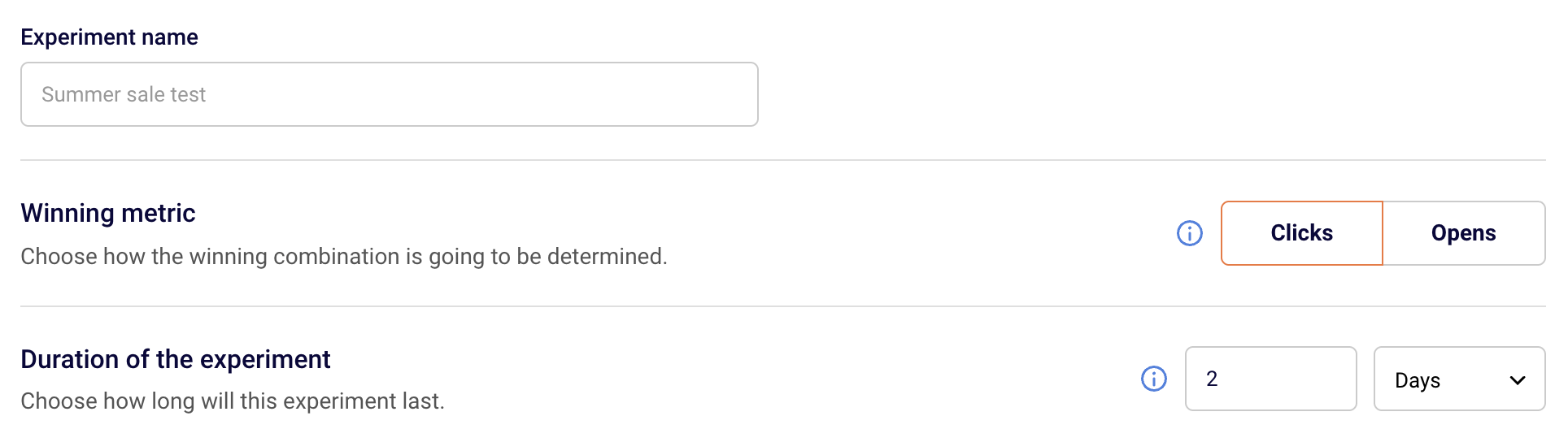You will also have to choose the Winning metric and the Duration of the experiment.