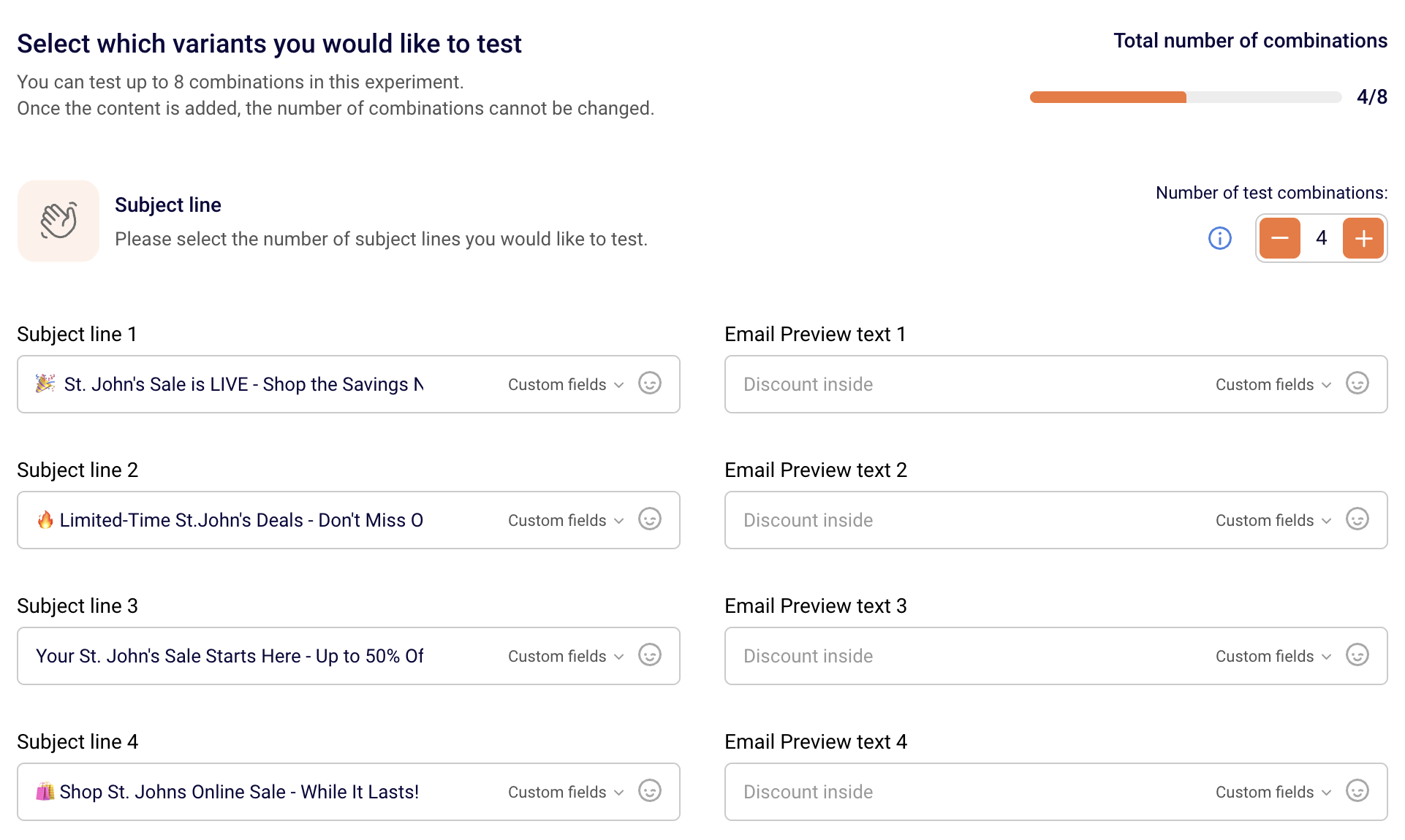 In the final step, you’ll see an overview of your experiment setup: all the subject lines, sender names, content variations, and testing settings.