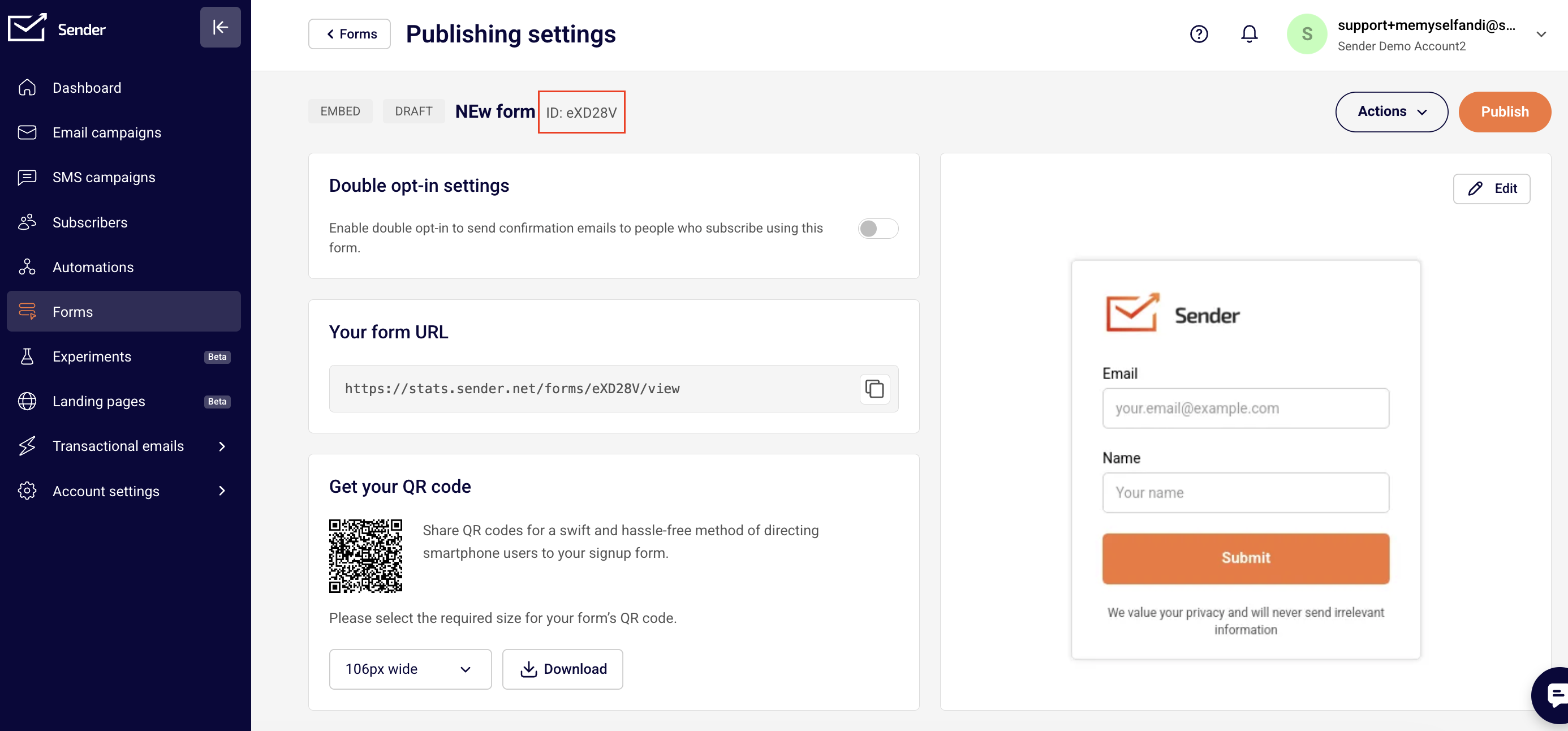 Go to your Sender account, access the Form section and head to the overview page of the form that you want to embed.