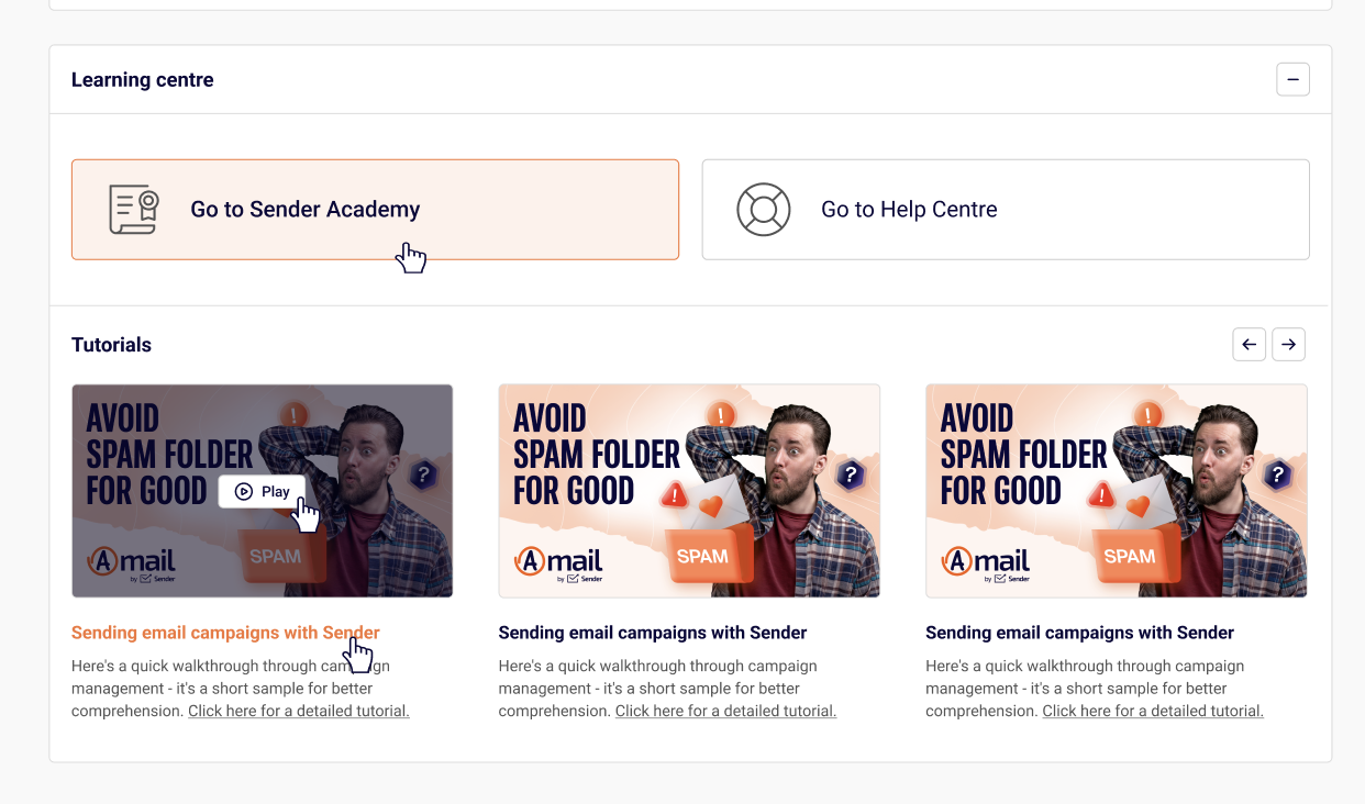 • Go to Sender Academy – Access comprehensive courses, training materials, and in-depth guides