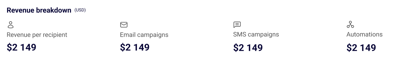 • Total revenue from Sender – Revenue generated through your Sender campaigns and automations